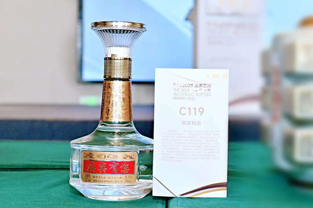 “滨宾有您”瓶型设计堪称艺术与文化的完美融合,瓶体通透,凸显产品自然生态萃取的内在品质,金色酒标雅致不落俗套。瓶帽设计灵感来源于商朝时期的酒器铜觚,在复刻经典中尽显雅致复古韵味。瓶身五粮元素凸显纯粮酿造、匠心工艺。“滨宾有您”还融入了楚相孙叔敖、淮河、镇淮楼等淮滨地域文化元素,整体设计和谐清新,恰到好处地彰显了产品的轻奢感,让滨宾有您在一众参赛作品中脱颖而出,斩获殊荣!