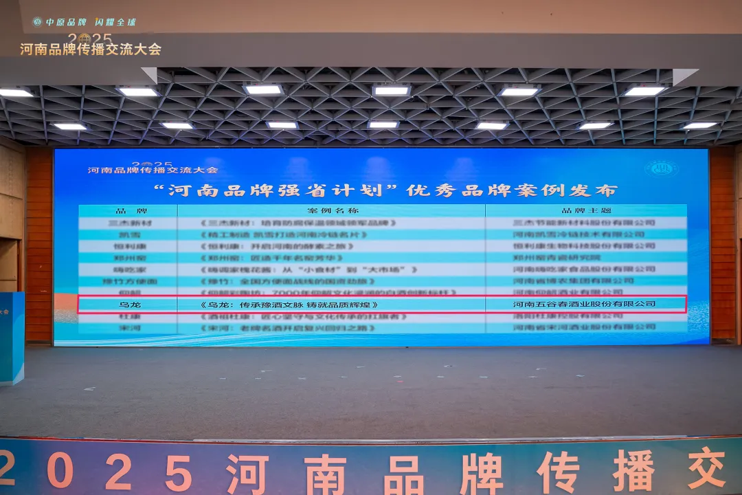 5月10日,由河南日报社主办的 2025河南品牌传播交流大会在郑州河南日报报业大厦隆重举行。河南五谷春酒业携品质佳酿参加本次活动,凭借深厚的文化积淀与创新发展实力,旗下“乌龙”品牌成功入选“河南品牌强省计划” 优秀品牌案例,为豫酒振兴注入强劲动能。